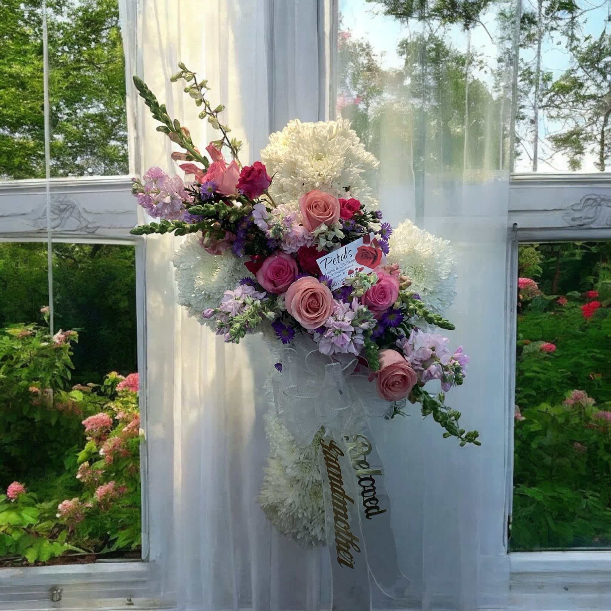 Our family will work closely with you to create a custom sitting spray that feels personal and appropriate for the occasion. Whether you prefer a soft and traditional arrangement or a more natural, garden-inspired design, we’re here to guide you with care.