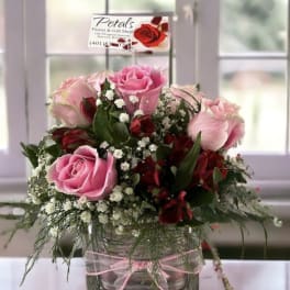 Price: $69.99Pink Rose Cube with Red Alstroemeria by Petals